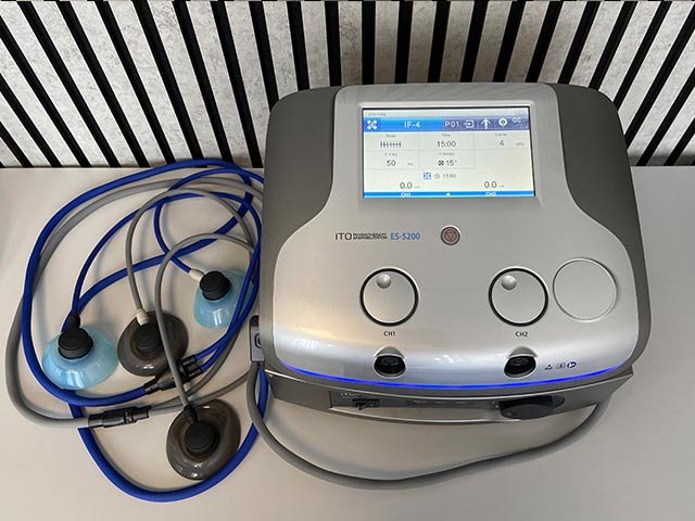Ką daro: švelnios srovės „pakutena“ raumenį ar nervą, mažina skausmą ir įtampą, padeda pajusti judesį.